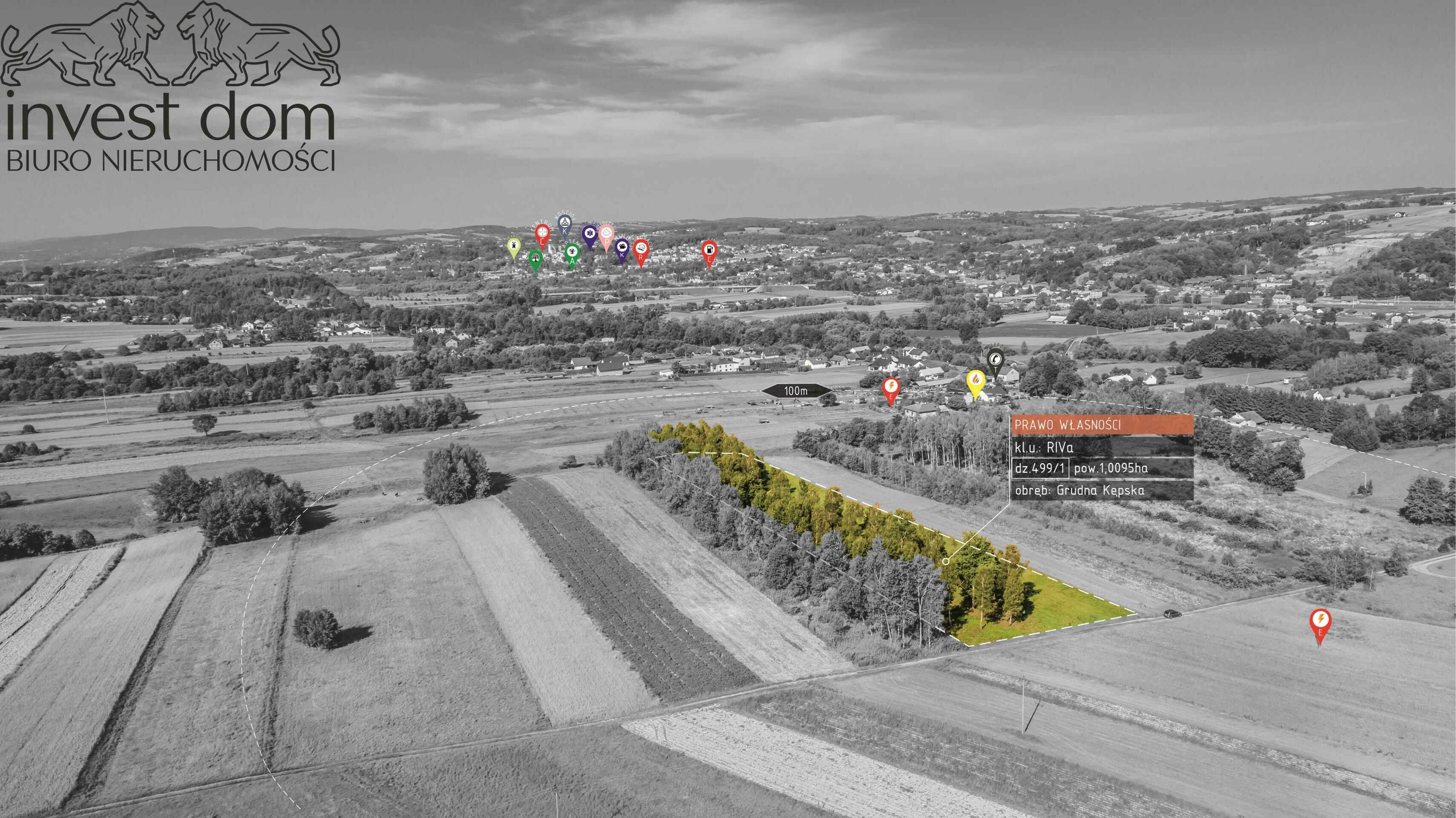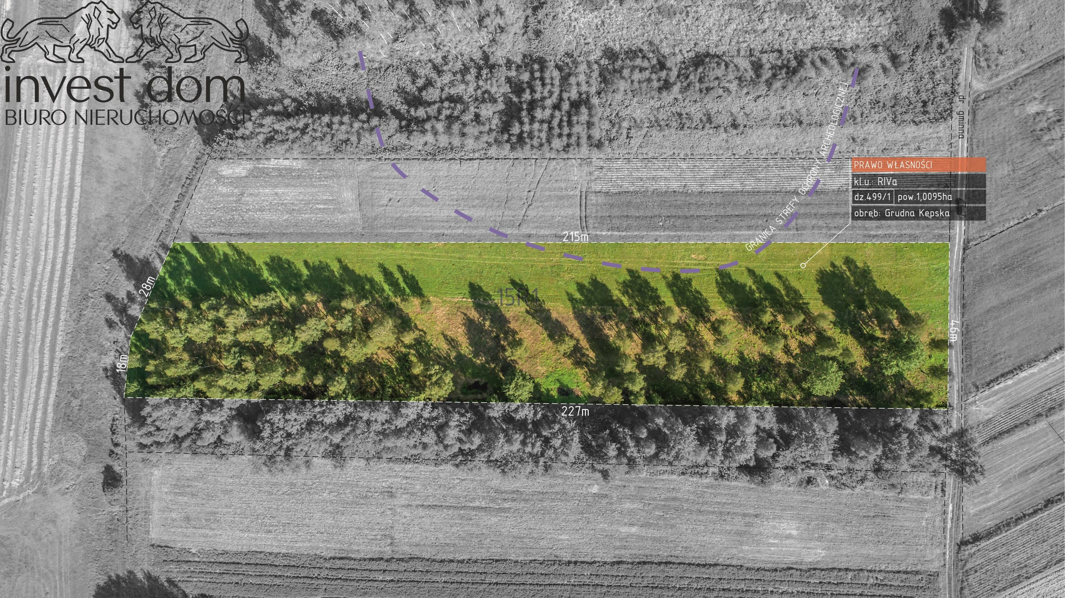 Przedmiotem sprzedaży jest pełne prawo własności niezabudowanej nieruchomości gruntowej o charakterze rolnym, oznaczonej w ewidencji gruntów numerem 499/1, o łącznej powierzchni 1,0095 ha (10 095 m²). Działka sklasyfikowana jest jako grunty orne klasy RVIa. Zgodnie z obowiązującym Miejscowym Planem Zagospodarowania Przestrzennego, nieruchomość w całości położona jest na obszarze oznaczonym symbolem 15R1 tereny rolne. Jednocześnie istnieją perspektywy częściowej zmiany przeznaczenia gruntu w przyszłych opracowaniach planistycznych, w kierunku zabudowy mieszkaniowej jednorodzinnej. Nieruchomość zlokalizowana jest w malowniczym otoczeniu lasów, w miejscowości Grudna Kępska, w gminie Biecz (powiat gorlicki, województwo małopolskie), co stanowi doskonałą propozycję dla osób poszukujących spokojnej przestrzeni z potencjałem inwestycyjnym.