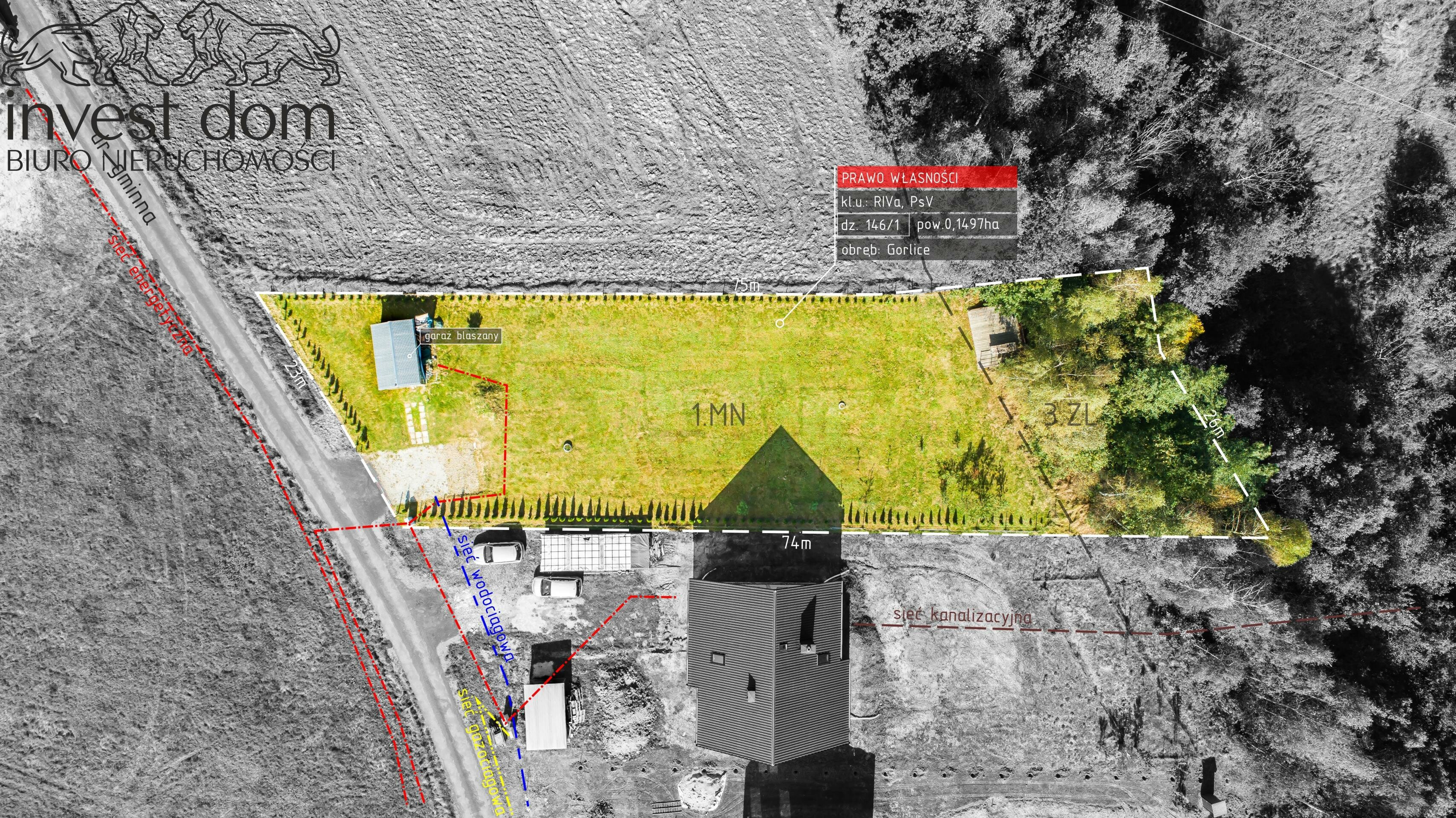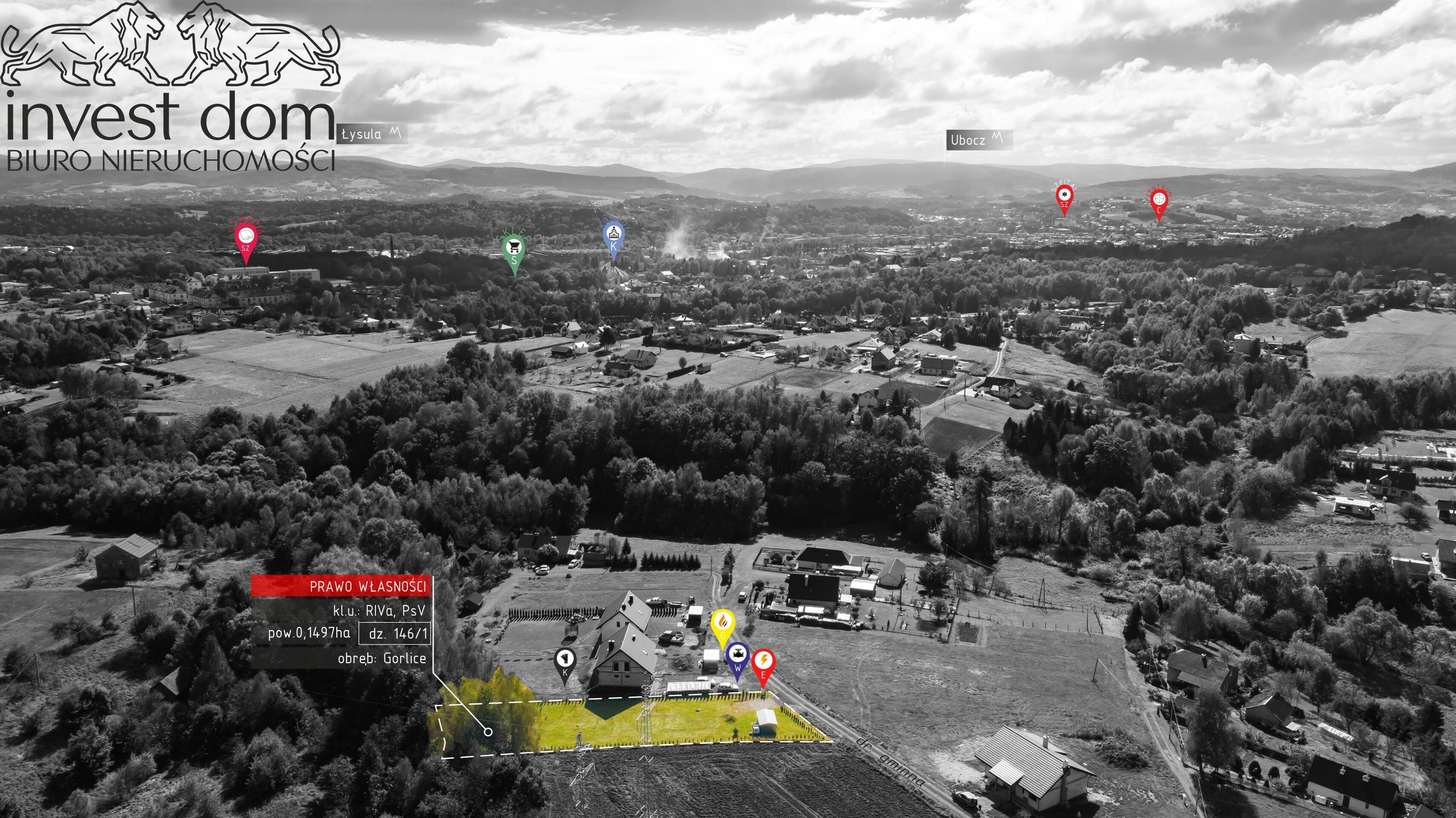 Przedmiotem sprzedaży jest nieruchomość gruntowa z przeznaczeniem budowlanym o numerze ewidencyjnym: 146/1 o powierzchni 0,1497ha oznaczone w (MPZP) Miejscowym Planie Zagospodarowania Przestrzennego jako tereny symbolu: 1.MN - (teren zabudowy mieszkaniowej jednorodzinnej) oraz 3.ZL - (teren do zalesień i zadrzewień w strefie linii elektroenergetycznej 110kV ze strefą ochronną - pow. ok 4ar), obszar nieruchomości stanowi klaso-użytki: RIVa, PsV, zlokalizowana przy ul. Granicznej w Gorlicach, woj. małopolskie.