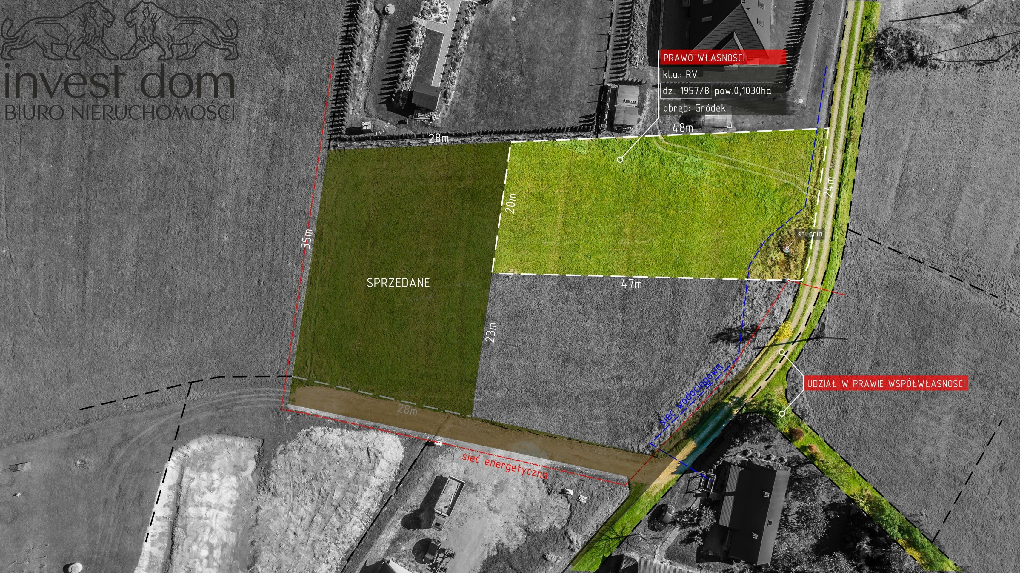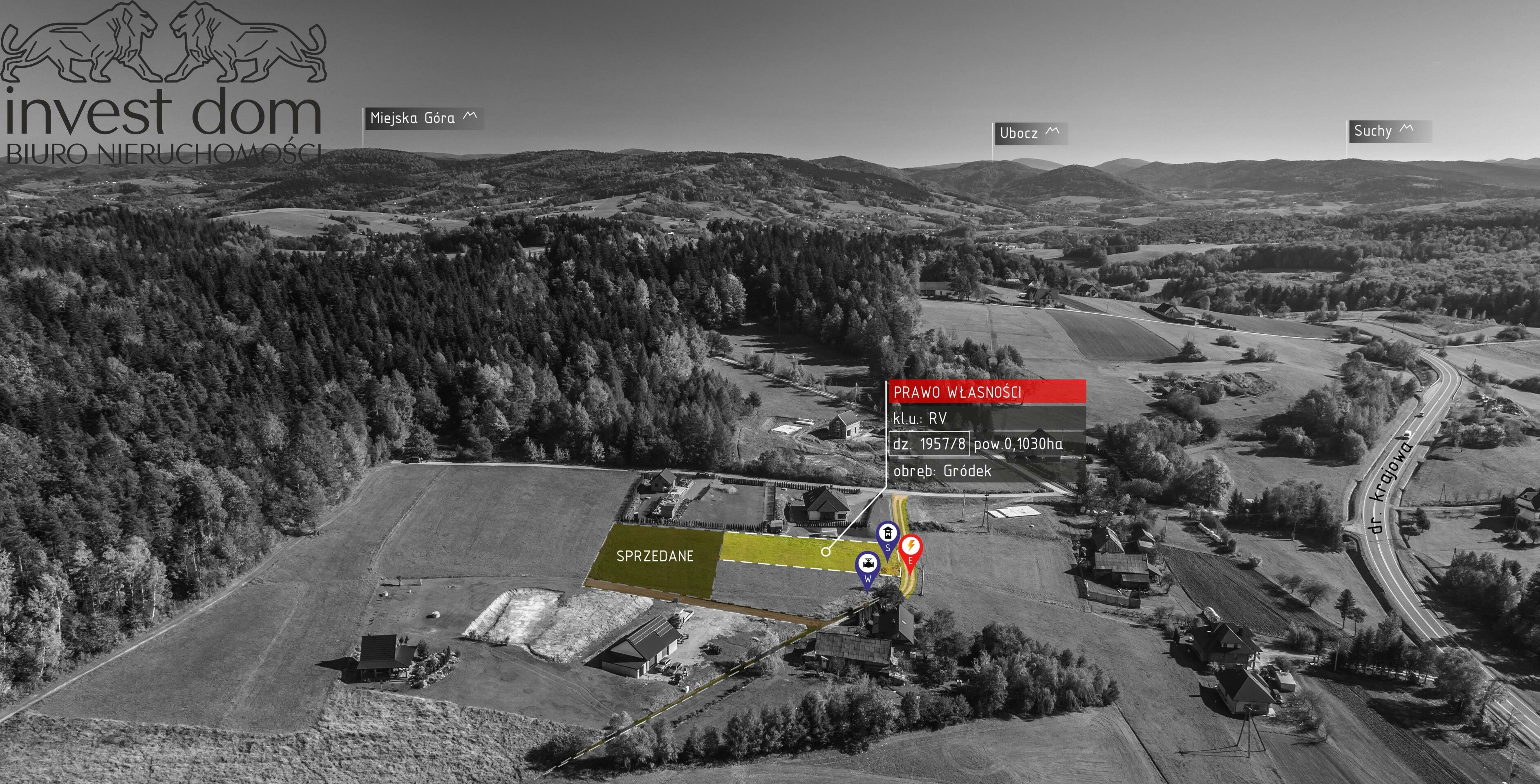 Przedmiotem sprzedaży jest nieruchomość gruntowa niezabudowana z przeznaczeniem budowlanym składająca się z działek ewidencyjnych numer: 1957/6 o powierzchni 0,1070 ha oraz 1957/8 o powierzchni 0,1030 ha, oraz udział w wysokości 1/3 w drodze dojazdowej oznaczonej numerem 1957/5. Zgodnie z Miejscowym Planem Zagospodarowania Przestrzennego (MPZP) działki oznaczone są symbolem: Z662 MN (tereny zabudowy mieszkaniowej jednorodzinnej). Całość stanowi klaso-użytki: RV, zlokalizowane w malowniczym zakątku Beskidu Niskiego w miejscowości Gródek, powiat nowosądecki.