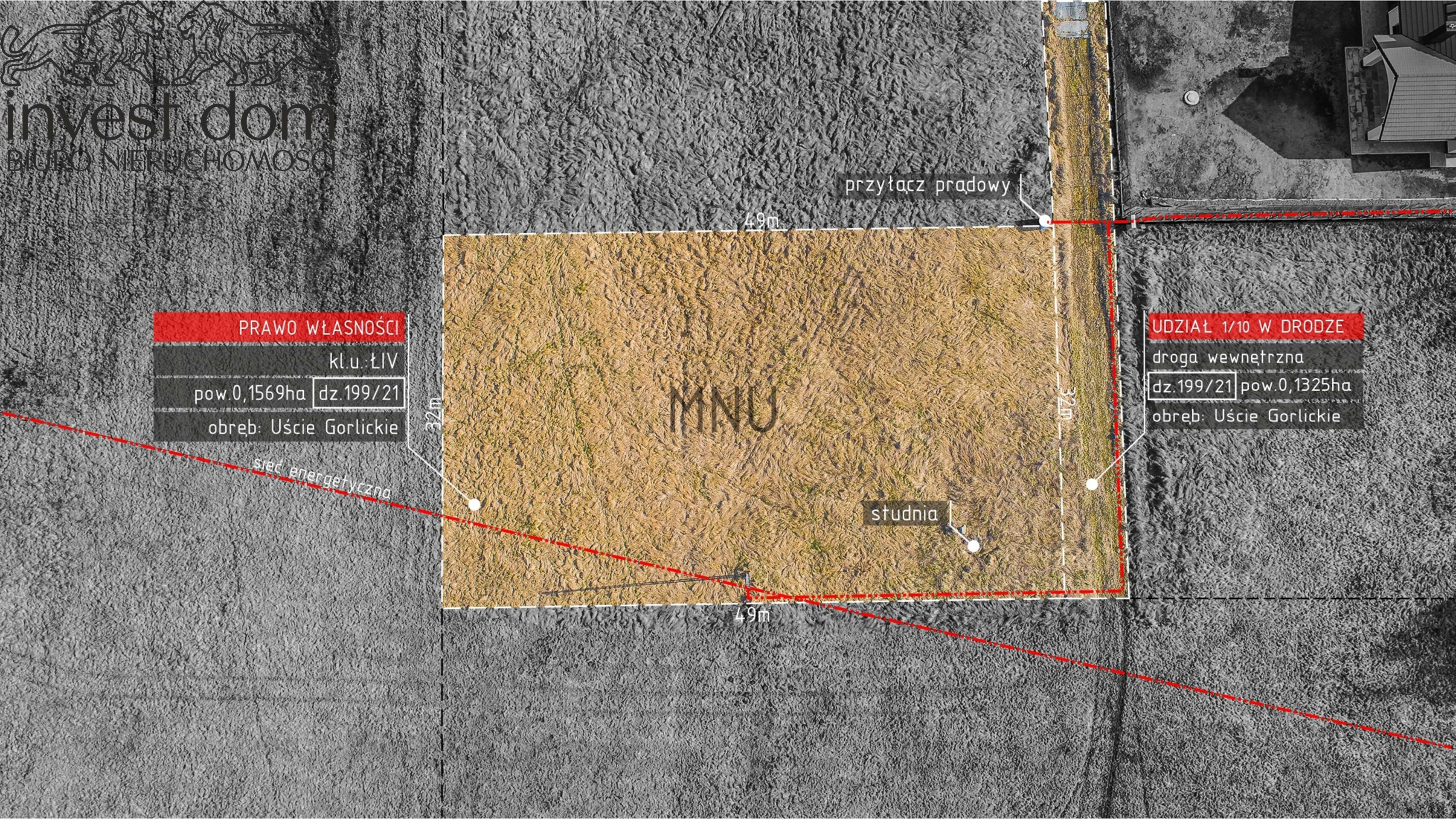 Przedmiotem sprzedaży jest działka budowlana niezabudowana o przeznaczeniu na cele mieszkaniowe oznaczona numerem ewidencyjnym: 199/16 o powierzchni: 0,1569 ha (1569 m.kw. - kl. użytek: ŁIV), do której w cenie jest prawo współwłasności w udziale 1/10 do wewnętrznej drogi dojazdowej oznaczonej numerem: 199/21 o powierzchni: 0,1325 ha, która według Miejscowego Planu Zagospodarowania Przestrzennego (MPZP) znajduje się w terenach symbolu: MNU - (tereny zabudowy mieszkaniowej jednorodzinnej i usługowej) umiejscowiona na wzniesieniach wyżyny "Kiczera" u stóp ściany lasów Beskidu Niskiego w łonie umajonych ziołami i kwiatami polan i rzek przysiołek "Kowalowe" sołectwa Uście Gorlickie, j. ewidencyjna: Uście Gorlickie, pow. gorlicki, woj. małopolskie.