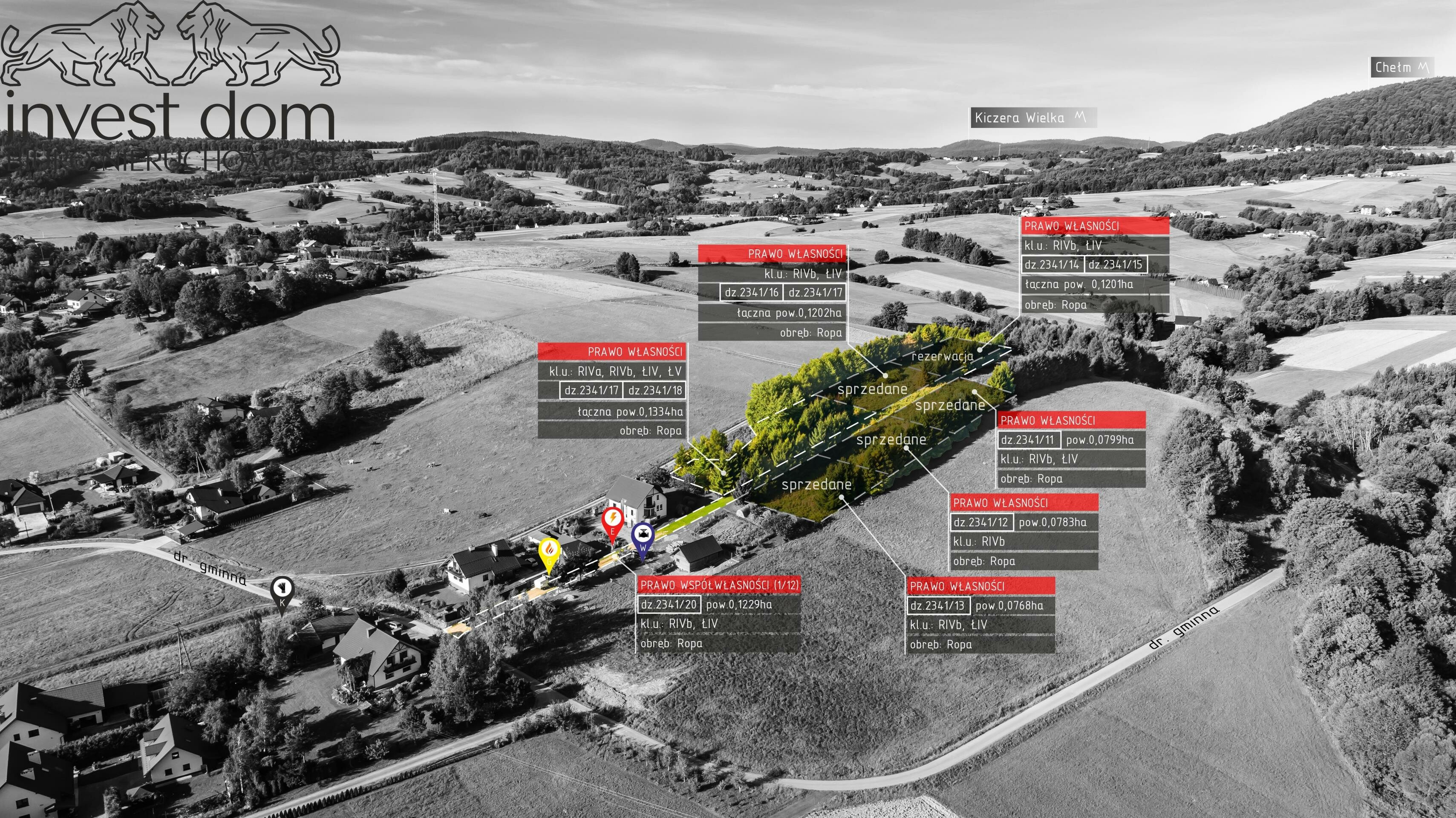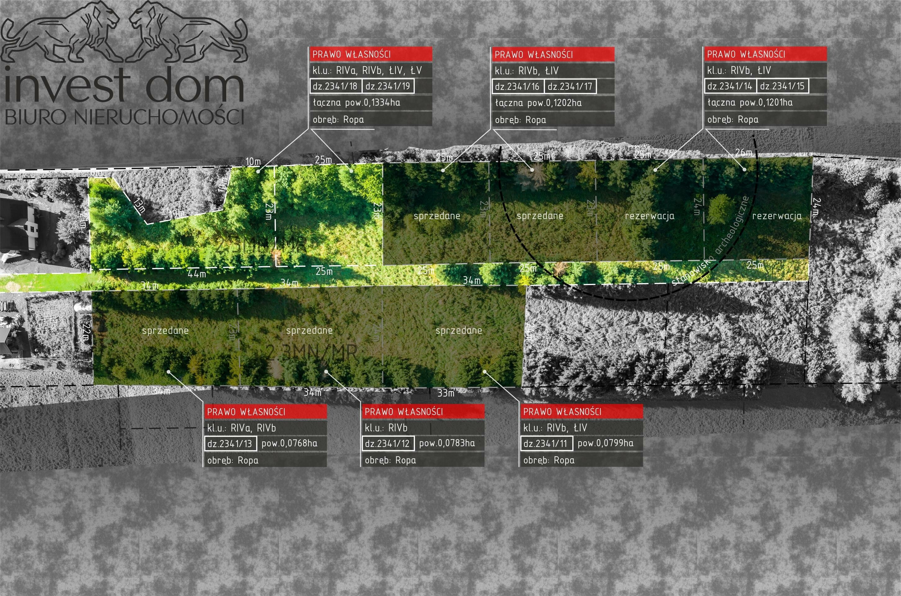 Przedmiotem sprzedaży jest sześć (6) urokliwe położonych działek budowlanych oznaczonych numerami ewidencyjnymi: 2341/11 - 2341/19 powierzchni 0,0768ha - 0,1202ha oraz działka numer: 2341/20 powierzchni 0,1229ha stanowiącą drogę dojazdową w której sprzedawany będzie udział. Zgodnie z (MPZP) Miejscowym Planem Zagospodarowania Przestrzennego działki obejmują tereny oznaczone symbolem 2.3 MN/MR (tereny zabudowy mieszkaniowej o niskiej intensywności zabudowy), cześć działek znajduje się w terenach stanowisk archeologicznych. Grunty stanowią klaso-użytki: (RIVa, RIVb, ŁV, ŁIV) usytuowane na wzgórzu z widokiem na Beskid Niski w miejscowości Ropa, woj. małopolskie.