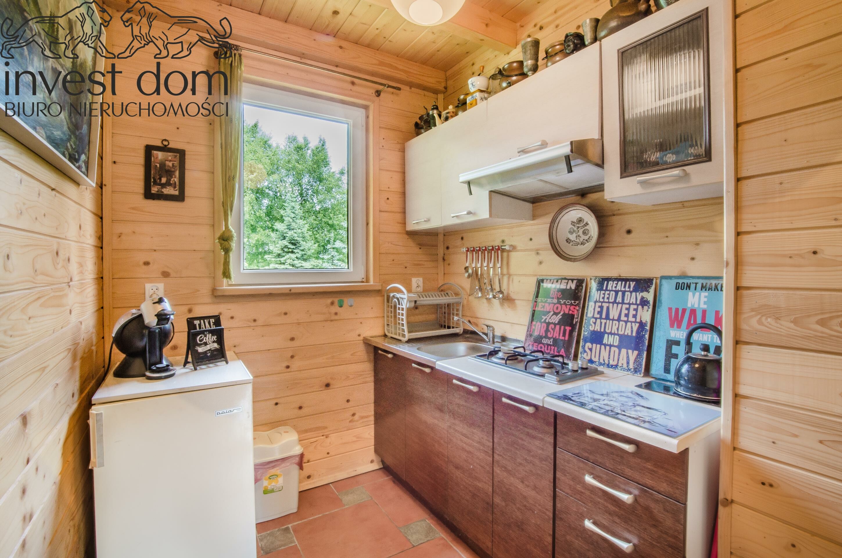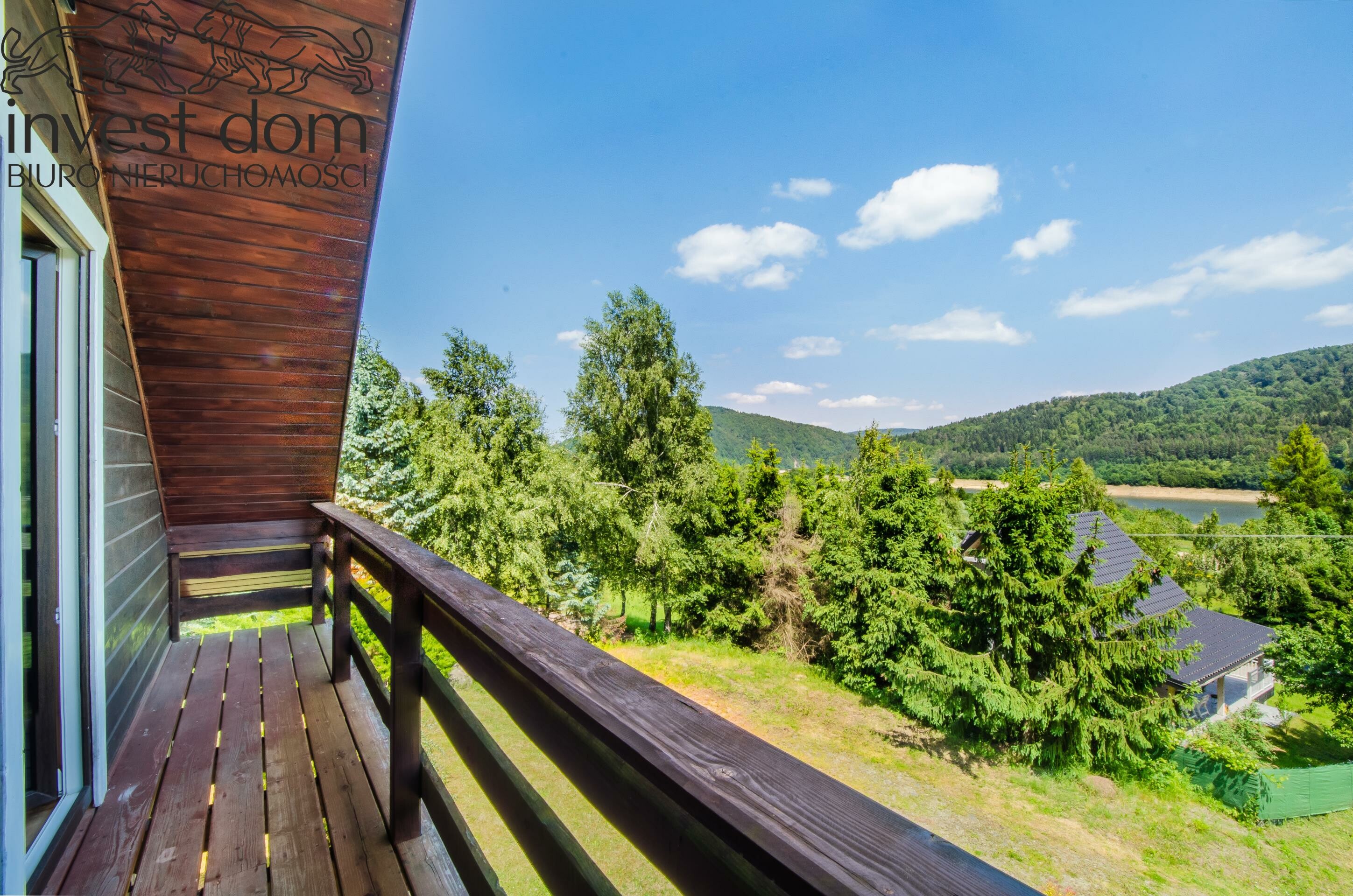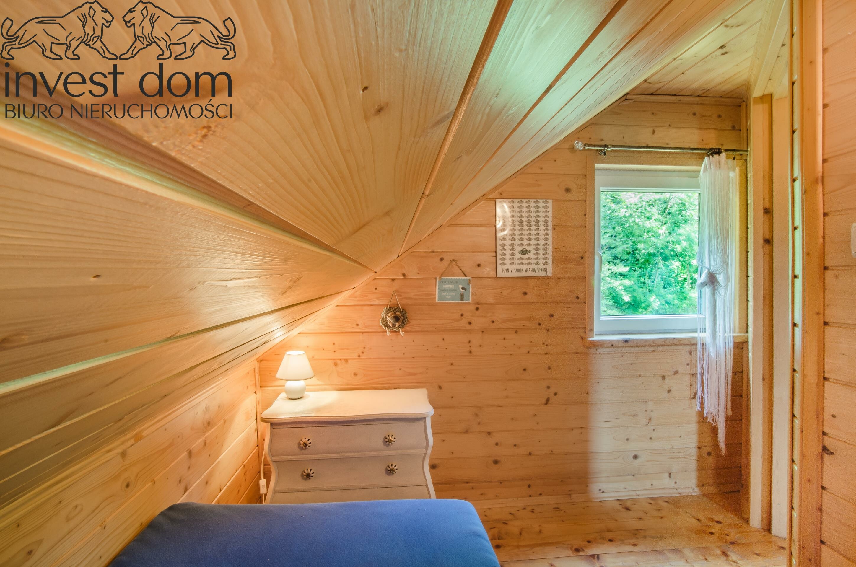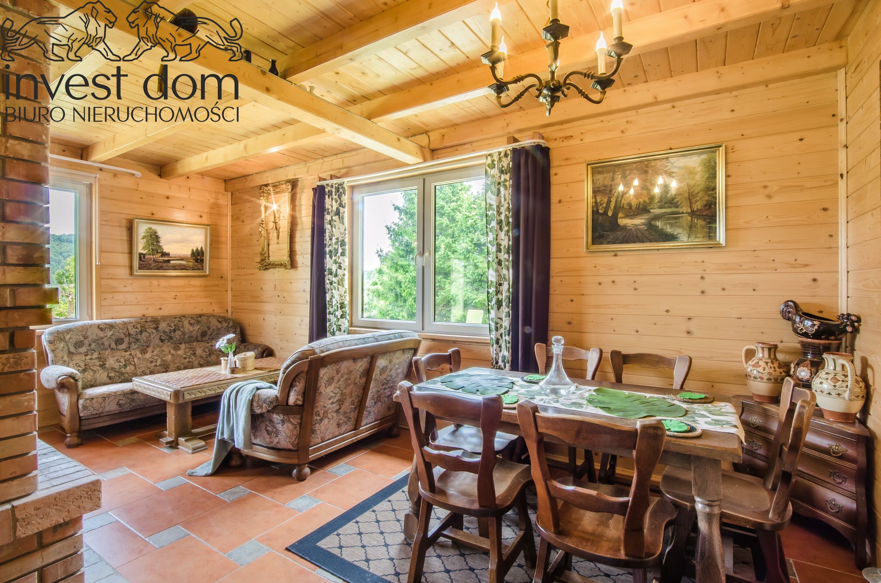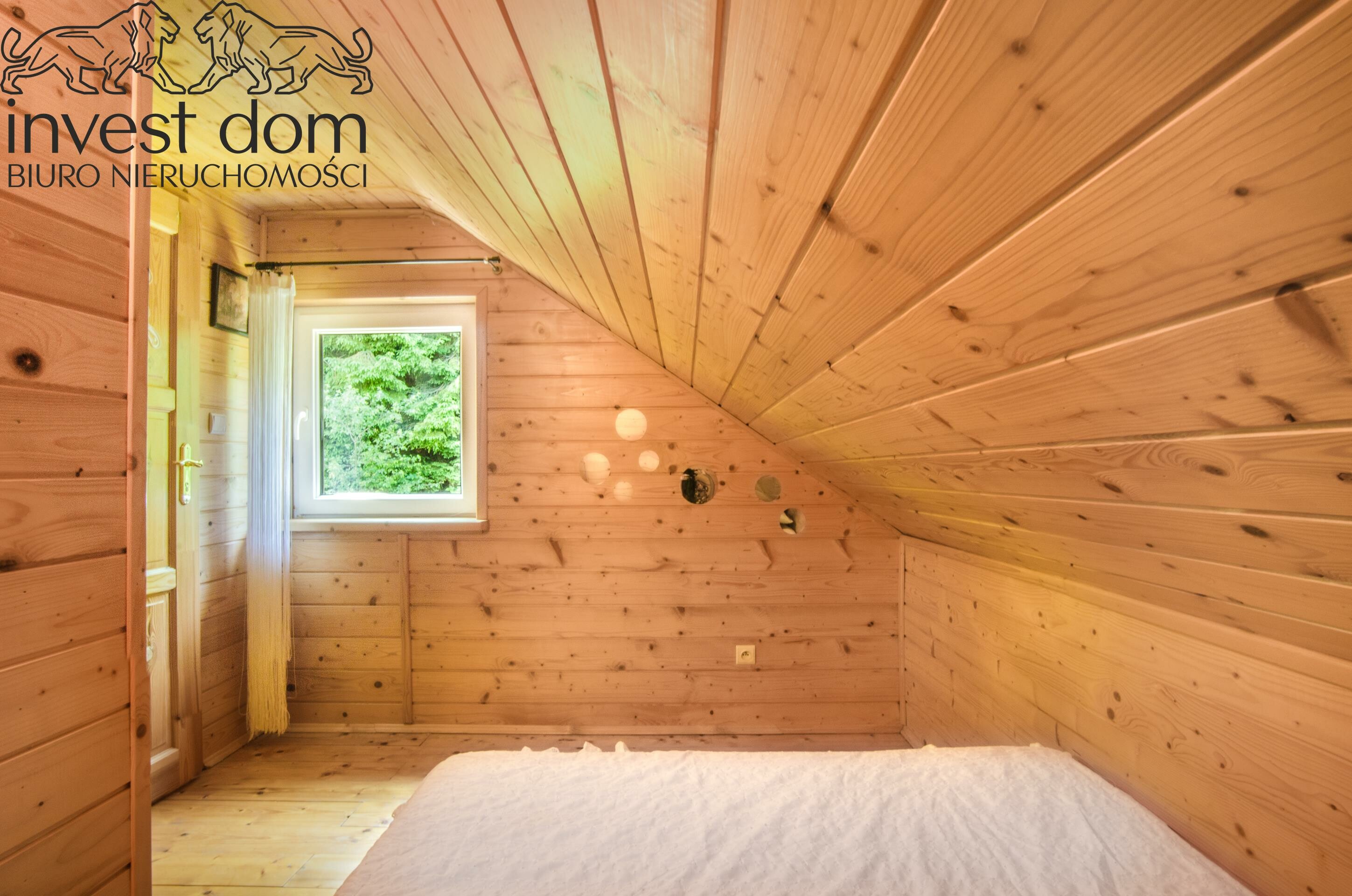 Budynek mieszkalny 1-kondygnacyjny z poddaszem użytkowym z tarasem oraz balkonem wzniesiony na fundamencie i oddany do użytkowania w 2016 roku. Nieruchomość usytuowana na działce w kształcie prostokąta (wym. 44m x 36m), o zróżnicowanej powierzchni, o średniej rzędnej wysokości 443-451 m.n.p.m. Budynek mieszkalny konstrukcji drewnianej z wykonaną termoizolacją o gr. ok. 10cm. Między poziomami poddasza, a mieszkalnym wykonano strop drewniany. Stolarka okienna PCV (2) szybowa, dach kryty blachodachówką w kolorze brązowym ocieplony wełna mineralną gr. 10cm. Posadzki na parterze wykonano w poszyciu płytek gresowych, natomiast na poddaszu z desek litego drewna. Podstawowym źródłem ogrzewania jest kominek na drewno usytuowany w salonie. Za ogrzewanie wody odpowiada elektryczny podgrzewacz wody umiejscowiony w łazienkowej. Instalacje wodno-kanalizacyjne sprawne, podobnie instalacja elektryczna (miedziana). Posesja częściowo ogrodzona, obsadzona ozdobnymi krzewami, drewniany taras świetnie sprawdzi się jako miejsce odpoczynku. Dojazd do nieruchomości odbywa się bezpośrednio z drogi powiatowej o nawierzchni asfaltowej, następnie ok 50m drogą służebną (utwardzą). Okolica jest urocza a widoki na okoliczne wzniesienia porośnięte gęstą roślinnością zapierają dech w piersiach.