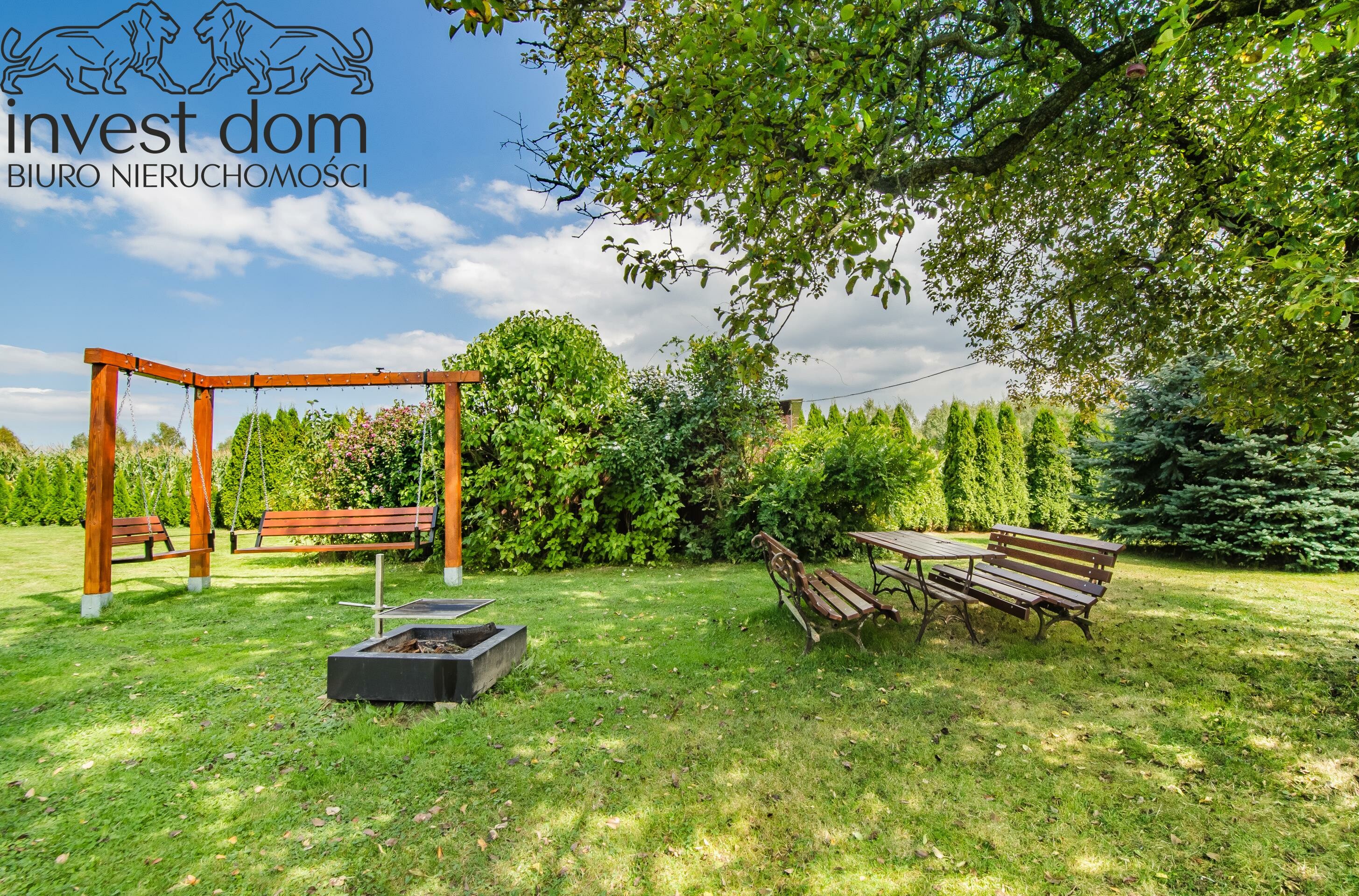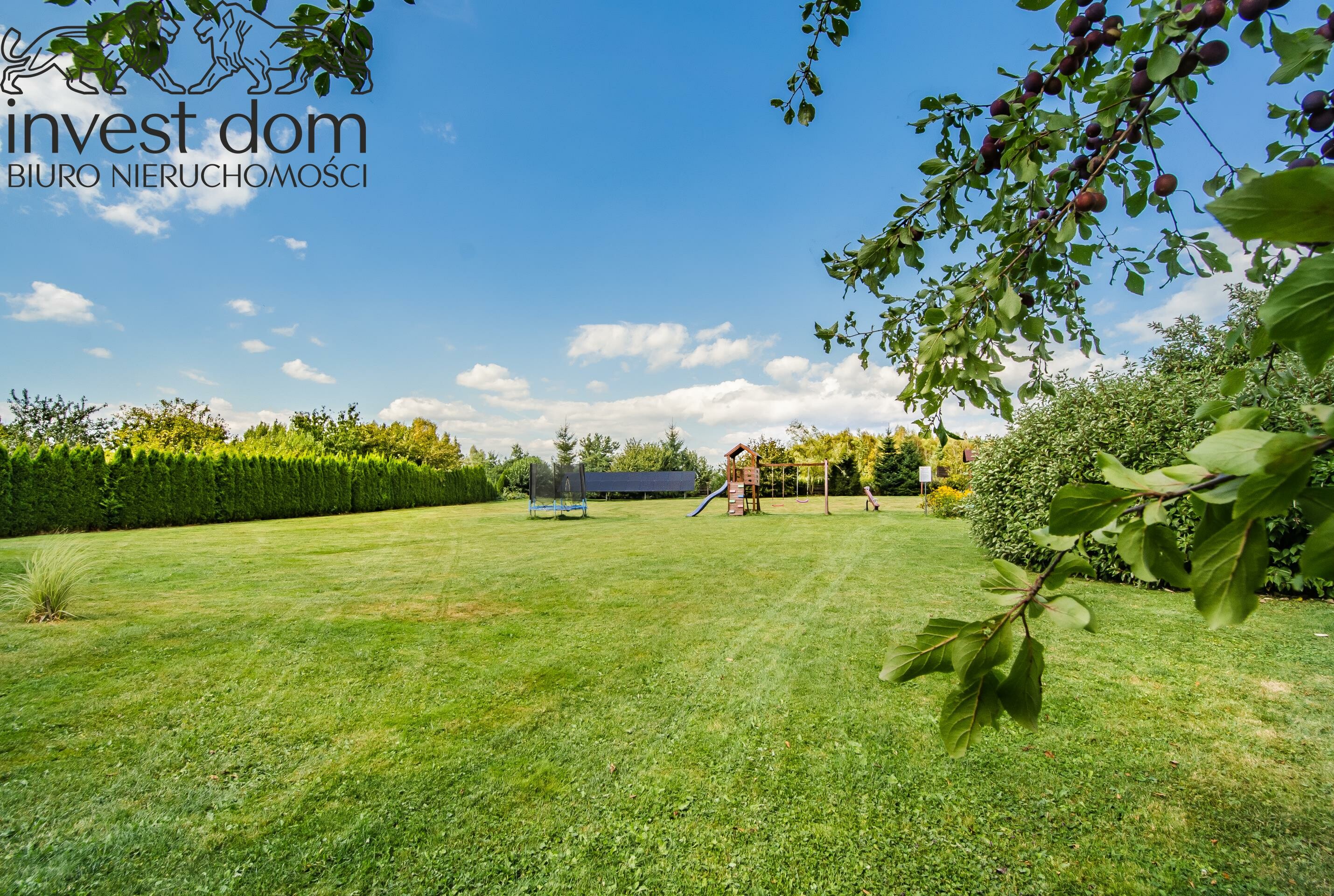 - ogrodzona działka z zadbaną zielenią i drzewami owocowymi,