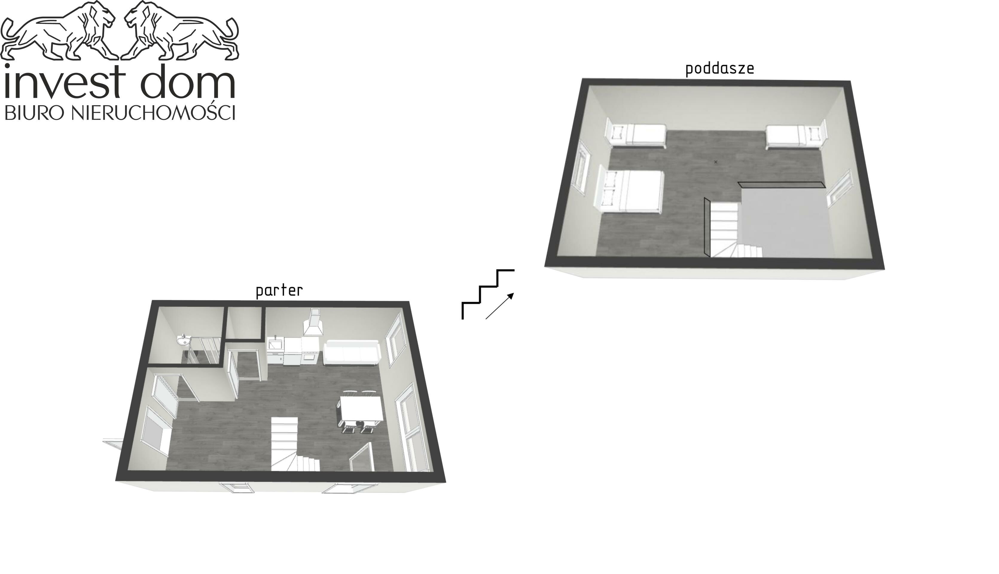 - parter: przedsionek, salon z otwartą kuchnia i wyjściem na taras, łazienka z wc,