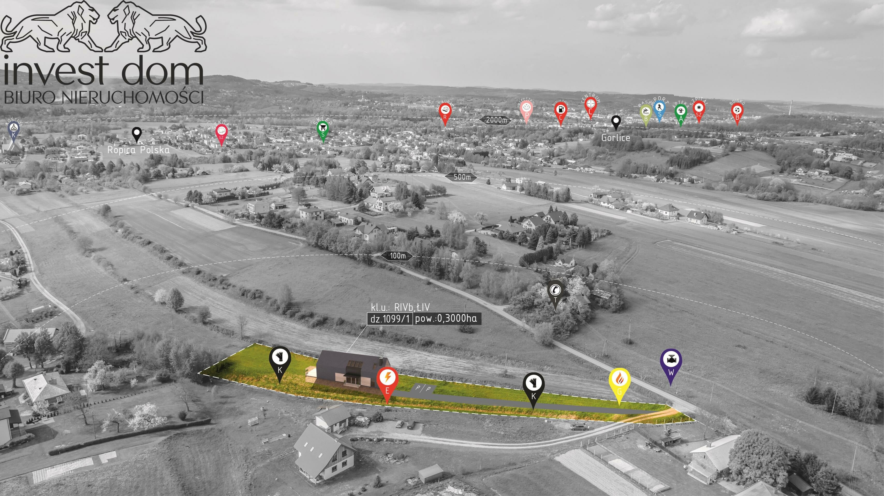 Przedmiotem sprzedaży jest urokliwie usytuowana działka budowlana, niezabudowana (widoczny budynek na działce stanowi przykład zagospodarowania przedmiotowej działki a jego blichtr jest wyłącznie koncepcyjny) wśród rozproszonej otuliny zabudowy jednorodzinnej oznaczona jako działka ewidencyjna numer: 1099/1 powierzchni: 0,3000 ha (3000 m.kw.) Dla nieruchomości została wydana decyzja WZiZT (Warunki Zabudowy i Zagospodarowania Terenu) zgodnie z powyższym obszary te obejmują tereny przeznaczone pod zabudowę budownictwa mieszkaniowego jednorodzinnego usytuowane w Ropicy Polskiej, jednostka ewidencyjna: Gorlice, pow. gorlicki, woj. małopolskie.