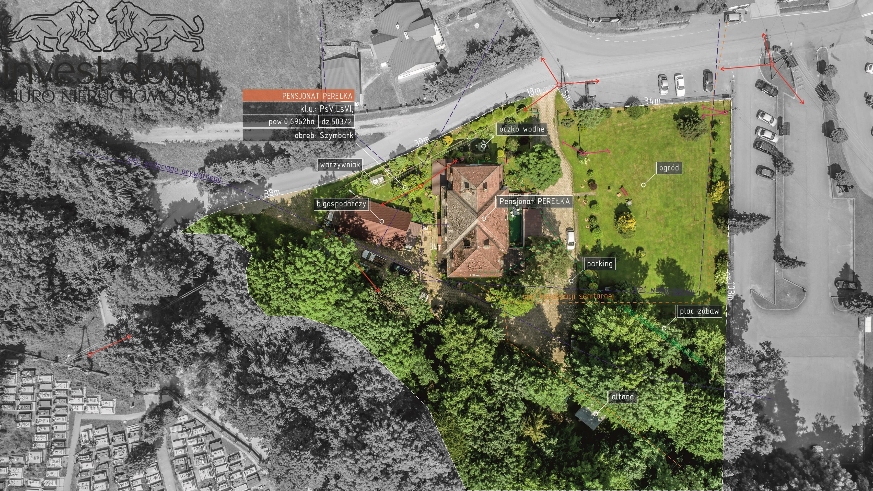 Przedmiotem sprzedaży jest odrębna własność budynku pensjonatowego o nazwie "PEREŁKA", który poprzedniej dekady był wielokrotnie nagradzany na arenie ogólnopolskiej za najlepszy pensjonat w kraju mierzący około: 562 m.kw.p.u., w którym do dziś jest prowadzona działalności agroturystyczna z możliwością adaptacji na usługi związane z organizacją wesel i innych imprez okolicznościowych. Nieruchomość stanowi część składową działki ewidencyjnej numer: 503/2 o powierzchni 0,6962 ha będącej w użytkowaniu wieczystym, która zgodnie z (MPZP) Miejscowym Planem Zagospodarowania Przestrzennego obejmuje tereny symbolu: 2.4.UT - (tereny obiektów i urządzeń turystyki i rekreacji) oraz niewielkiej części od strony strumienia w terenach symbolu: 1.1.LS - (tereny leśne), 3.2.KGD - (drogi gminne dojazdowe klasy D) umiejscowiony nieopodal drogi krajowej nr DK28 w Szymbarku, pow. gorlicki, woj. małopolskie.