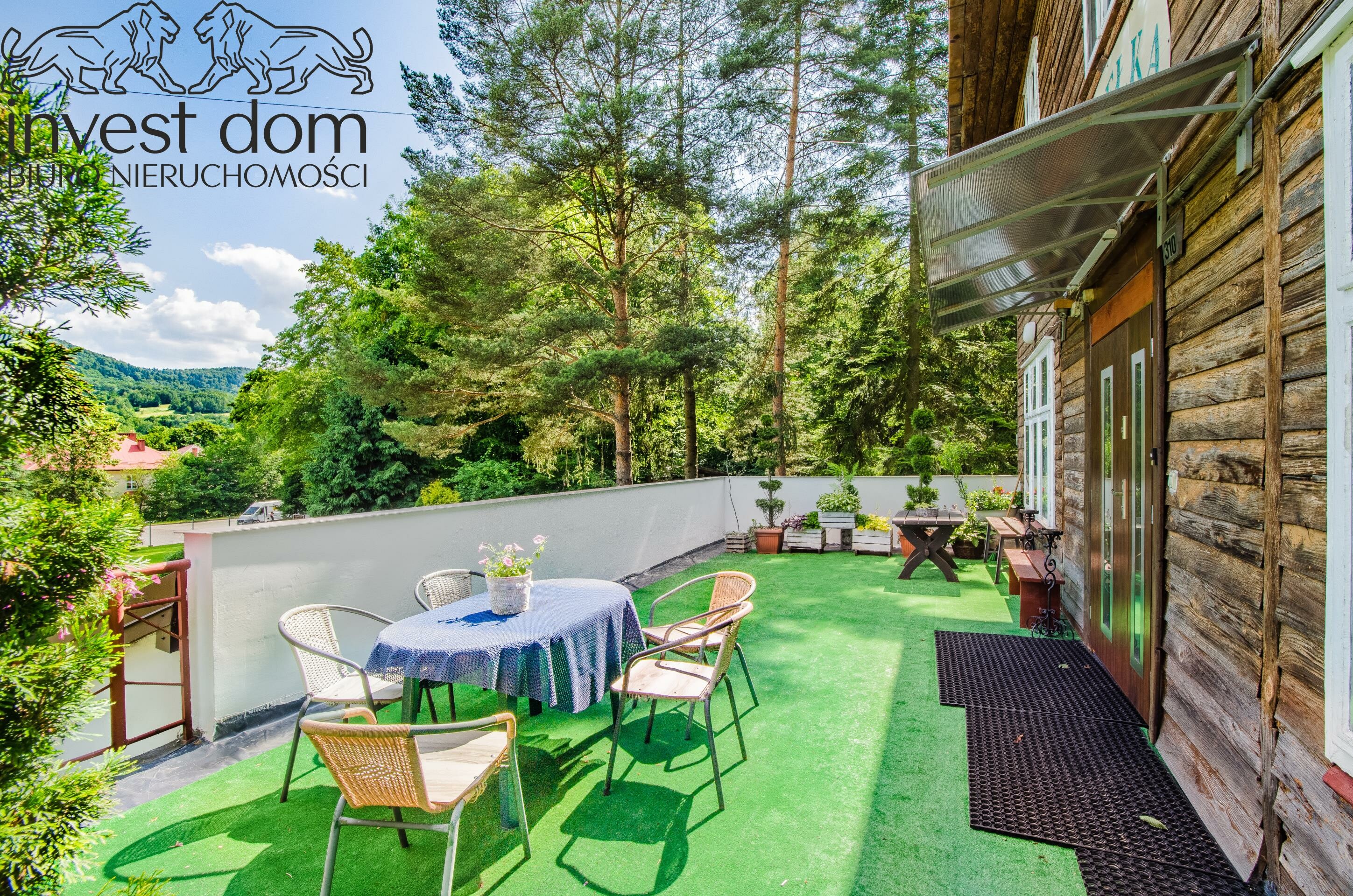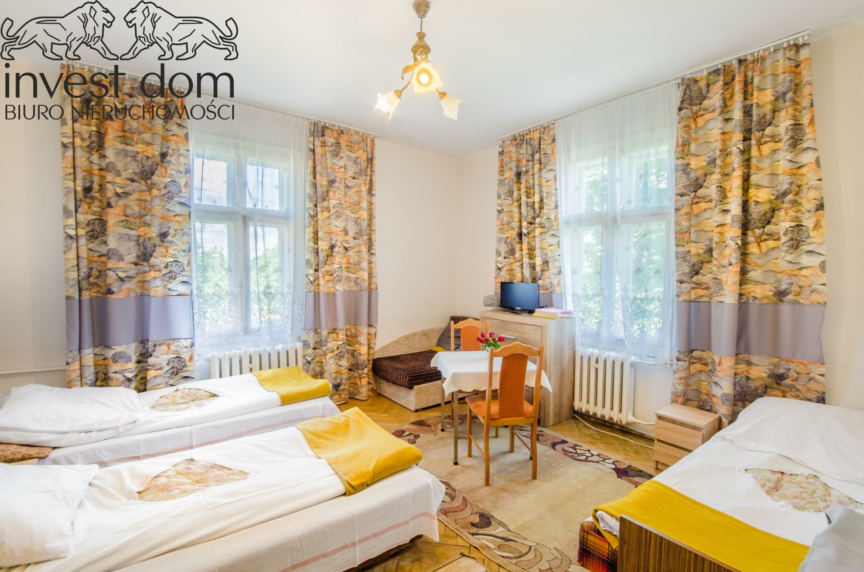 Jeśli marzysz o własnej działalności pensjonatowej to ten obiekt zapewne spełni Twoje oczekiwania. Pensjonat Perełka to (4) czterokondygnacyjny budynek z symetrycznie rozplanowanym wnętrzem, którym towarzyszą skrzypiące podłogi, o których wspomniała w swoich powieściach sama wybitna polska pisarka Maria Dąbrowska, która w czasach świetności, sama miała możliwość się zatrzymać i gościć na kilka dni w Willi Perełka. Nieruchomość wzniesiona w 1930 roku konstrukcji murowano-drewnianej z naturalnych budulców takich jak kamień oraz drewno. Dach budynku kryty gontem bitumicznym. Ściany nośne oraz działowe parteru i poddasza wykonane z drewnianego bala ciosanego. Stolarka drzwiowa i okienna również z litego drewna. Ogrzewanie i ciepła woda z zasobnika (900L) doprowadzona jest z pieca drewno/węgiel za pośrednictwem żeliwnych grzejników. Wszystkie wewnętrzne instalacje (wod., kan., gaz i elektryczna) sprawne, nie wymagające koniecznych nakładów na jej funkcjonowanie. Do budynku prowadzą trzy wejścia, dwa z boku budynku traktowane jako robocze oraz pierwsze pełniące funkcję głównego wejścia jest we frontalnej części, po przekroczeniu jego progu znajdziemy się w holu, następnie pokoje, kuchnia, pomieszczenia techniczne, toaleta oraz klatka schodowa prowadząca na piętro w , którym znajdują się pokoje hotelowe, łazienki z wc oraz aneks kuchenny udostępniony dla potrzeb wynajmujących apartamenty. Wchodząc po lastrykowych schodach znajdziesz się na poddaszu na, którym wydzielono pokoje hotelowe, łazienki i toalety. Piwnica budynku to funkcjonująca jasna i wysoka, stylowa restauracja, główna kuchnia oraz pomieszczenia dodatkowe np. magazyny żywności, pomieszczenia socjalne oraz kotłownia.