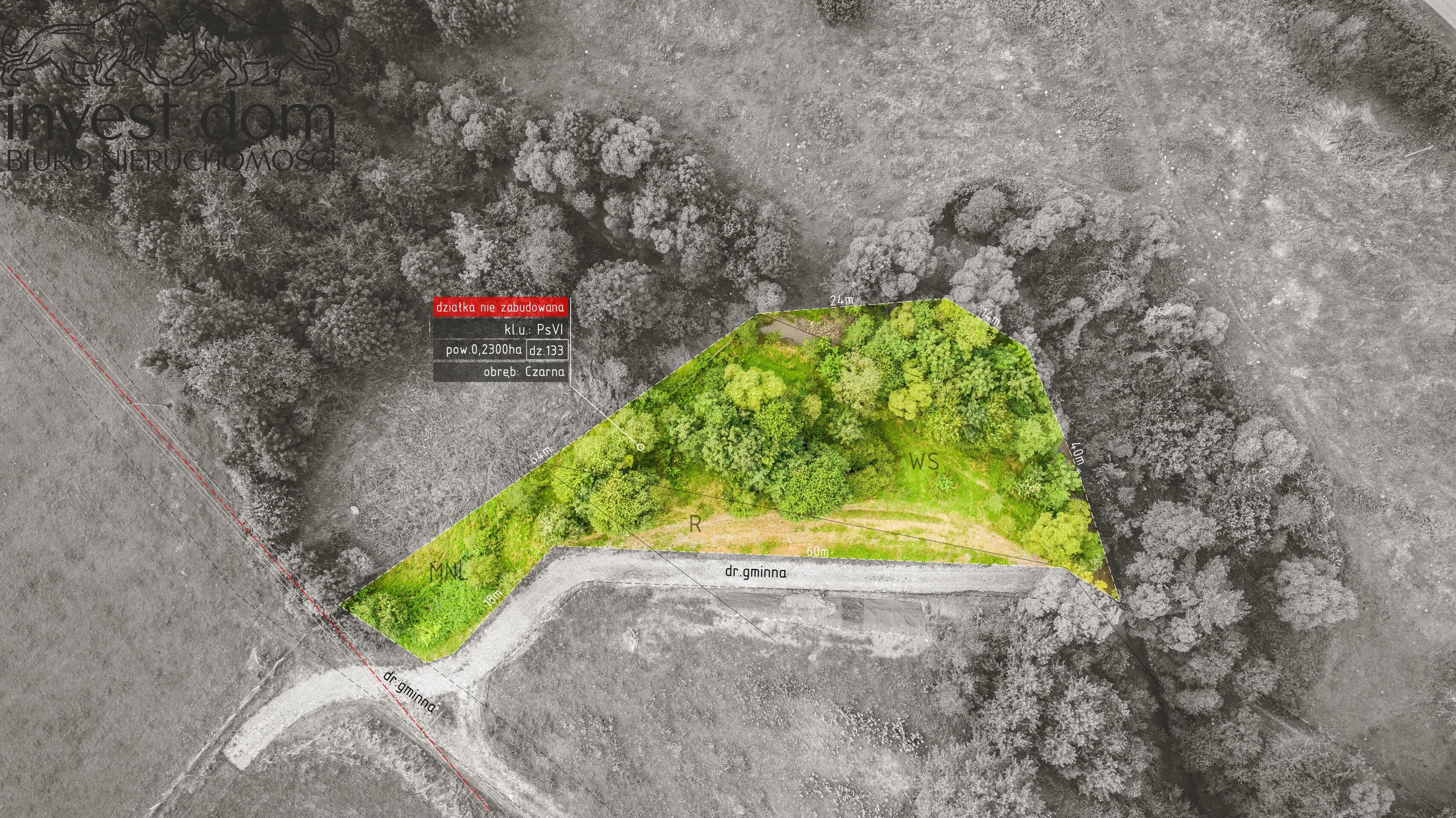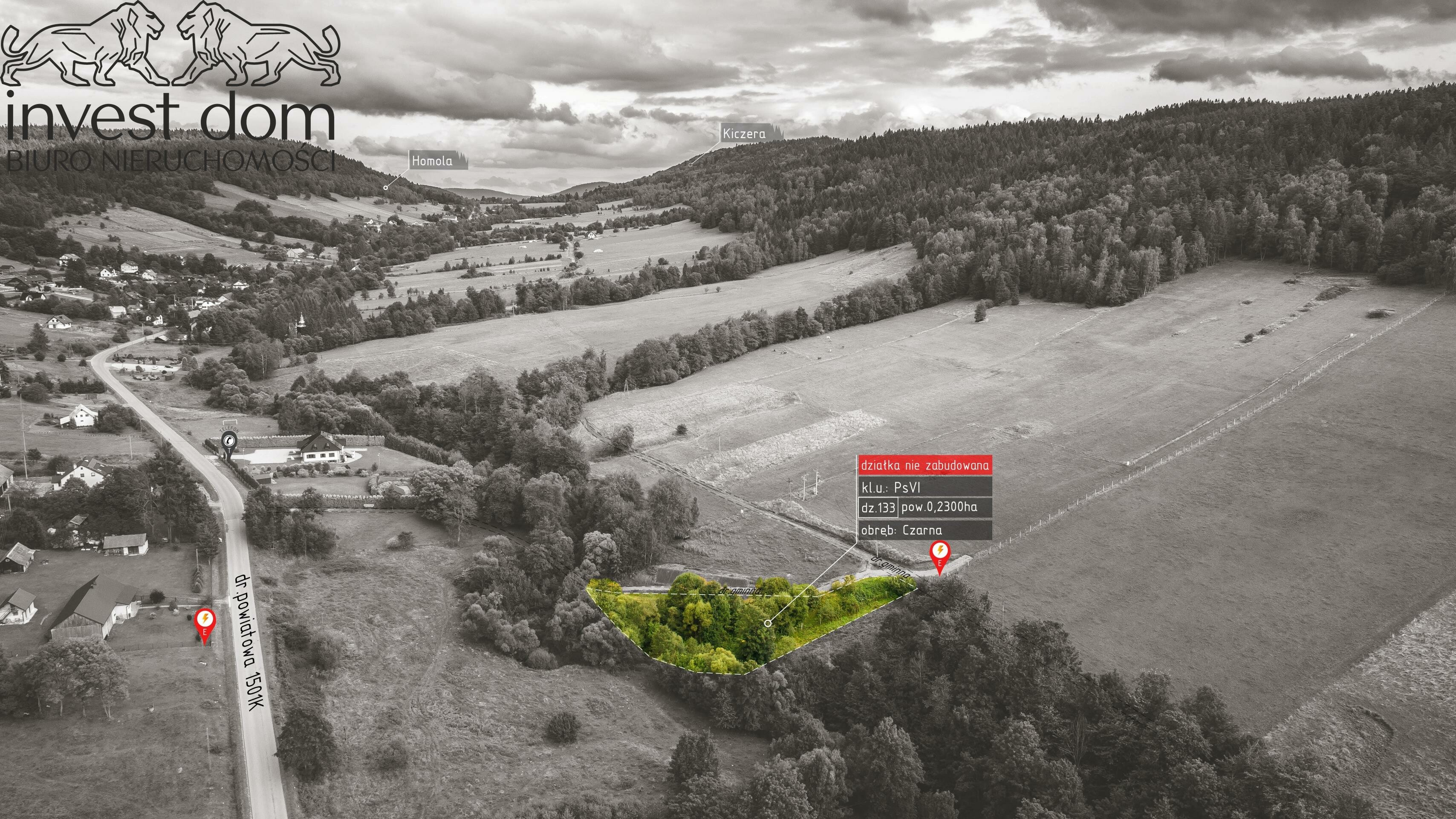 Przedmiotem sprzedaży jest całe prawo własności działki gruntu oznaczonej numerem ewidencyjnym: 133 o powierzchni: 0,23 ha stanowiąca (klaso-użytki: PsIV), która zgodnie z (MPZP) Miejscowym Planem Zagospodarowania Przestrzennego obejmuje tereny oznaczone symbolem: MNL - (tereny zabudowy mieszkaniowej jednorodzinnej i rekreacyjnej pow. ok 3ar), R - (tereny rolne) oraz w  od strony strumienia do linii brzegowej w obszarach symbolu: WS- (wody powierzchniowe ze strefą osłony biologicznej). Grunty zlokalizowane w urokliwej wsi Czarna, pow. gorlicki, gm. Uście Gorlickie, woj. małopolskie.