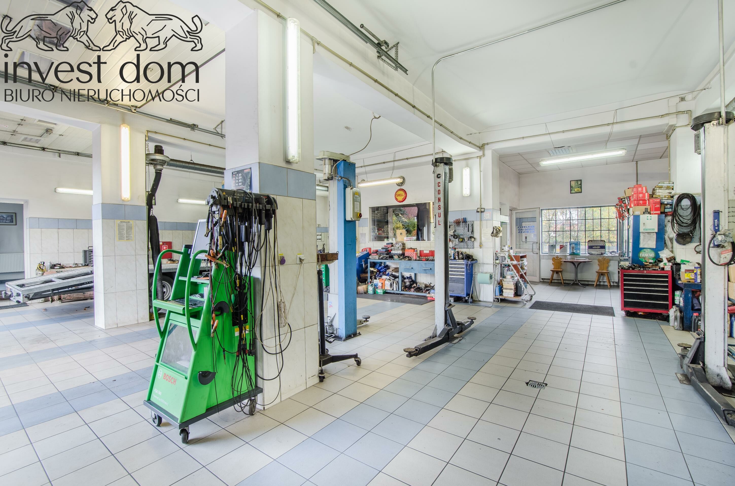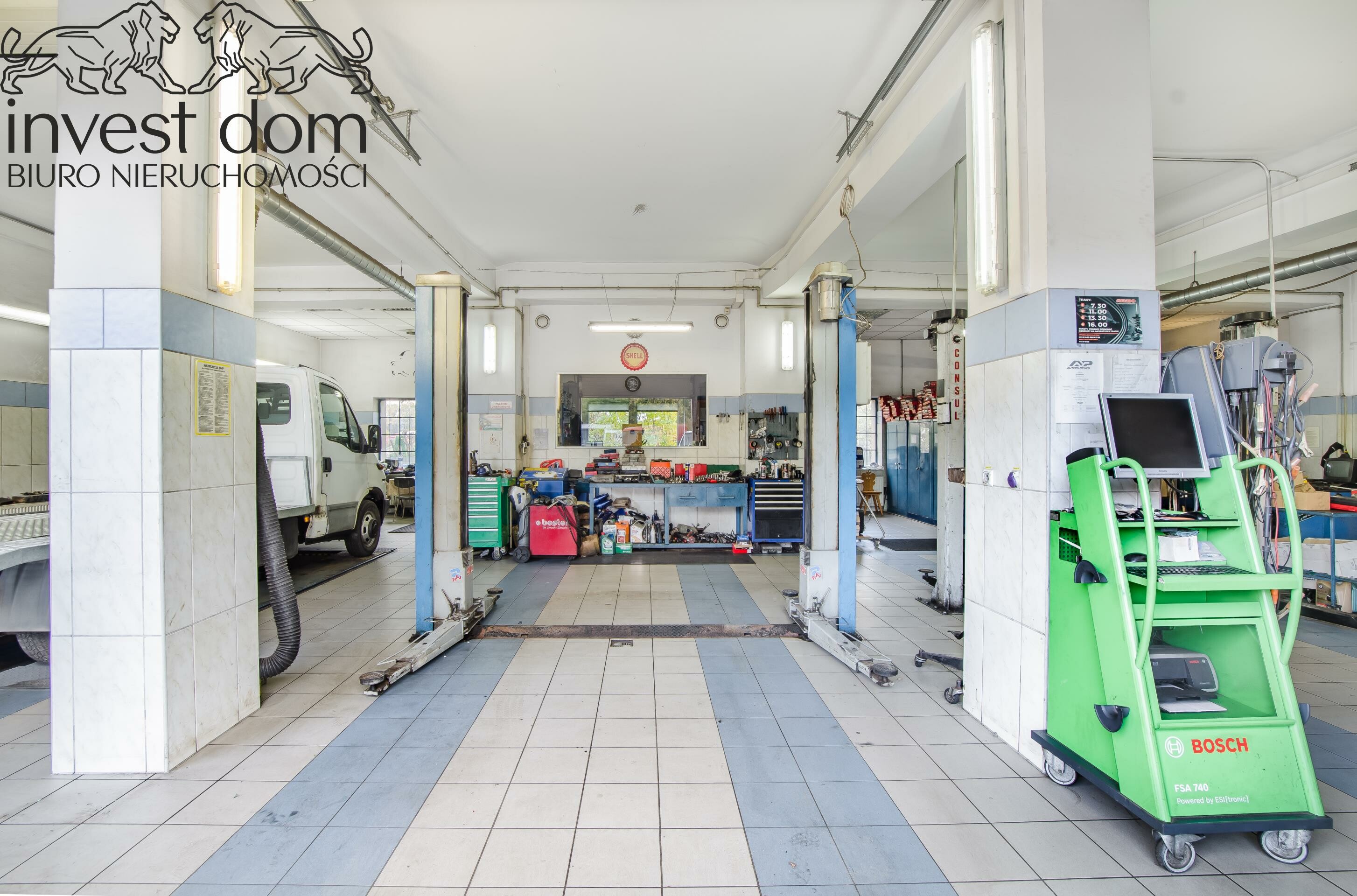 - w pełni wyposażony warsztat - profesjonalne stanowiska, narzędzia, podnośniki, sprzęt diagnostyczny i kompletne wyposażenie umożliwiające natychmiastowe rozpoczęcie pracy bez dodatkowych inwestycji,